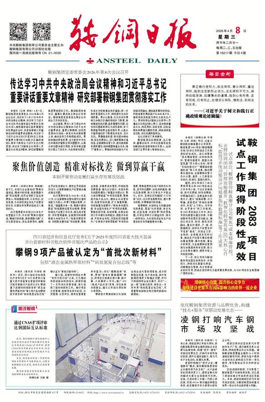 鞍钢集团2083项目 试点工作取得阶段性成效