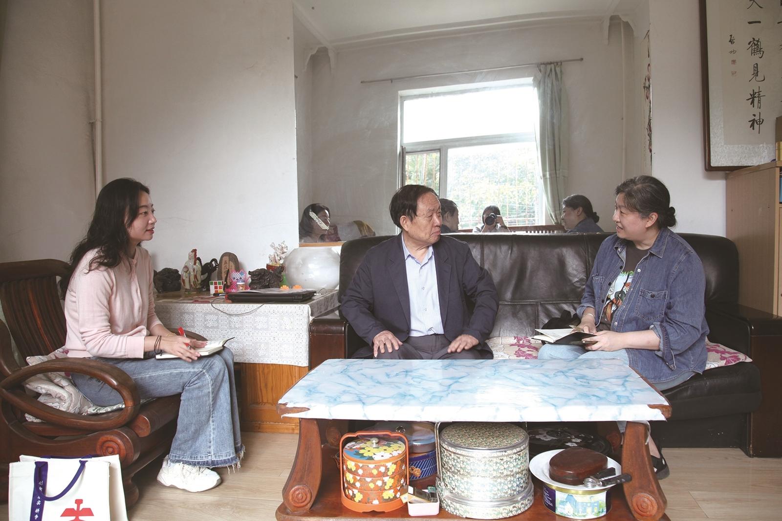 毕怀林儿子毕佐生(中)正在接受采访。