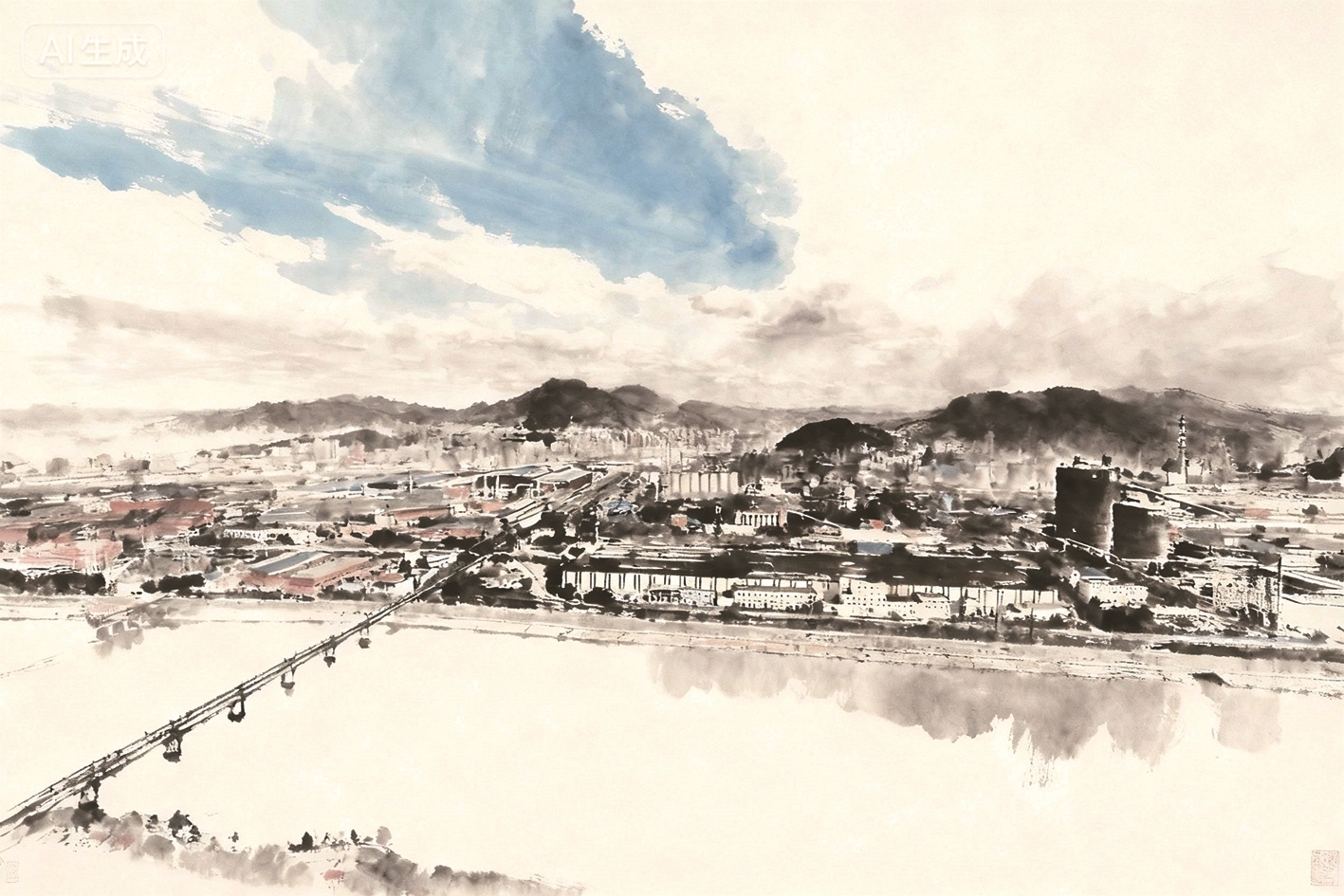 在中华人民共和国76岁华诞到来之际,本版用一幅幅由AI技术呈现出的鞍钢集团各基地厂区油画、水墨画,带领广大读者游览大美鞍钢,领略钢铁巨轮的别样风采,以此祝福鞍钢集团大展鸿图!祝福伟大祖国繁荣富强!