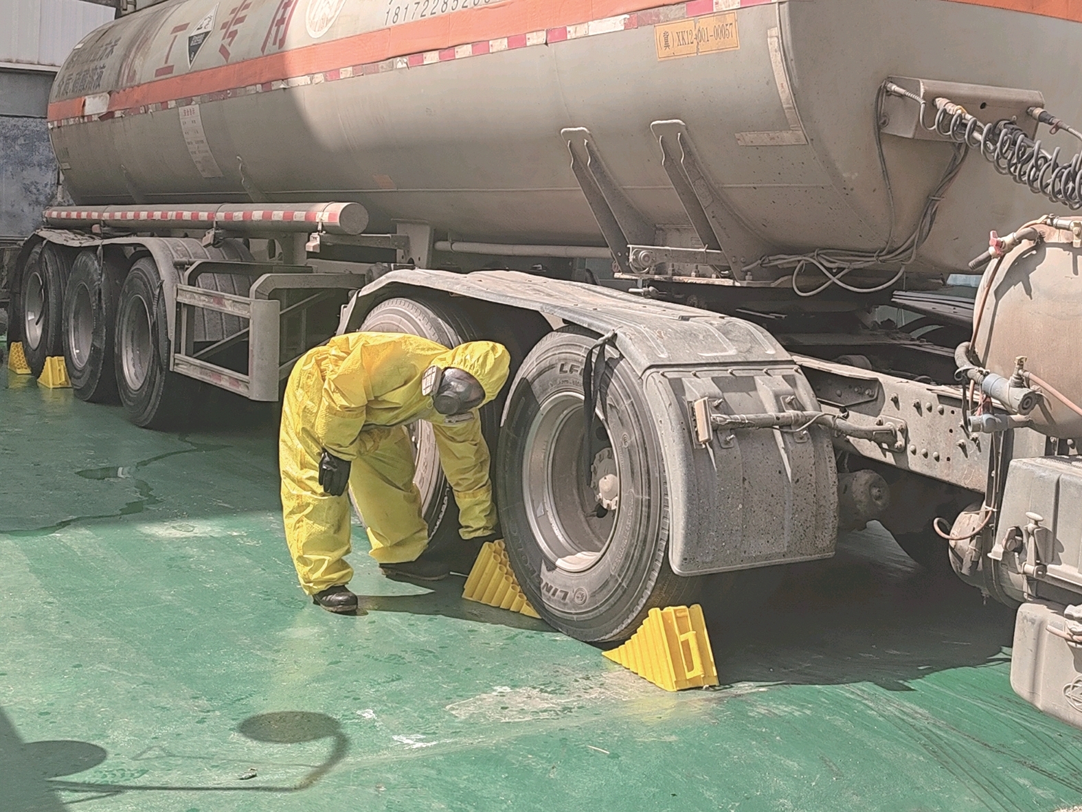 鞍钢联众冷轧厂薄板轧延退火酸洗作业区职工正在协助相关方进行卸酸作业。