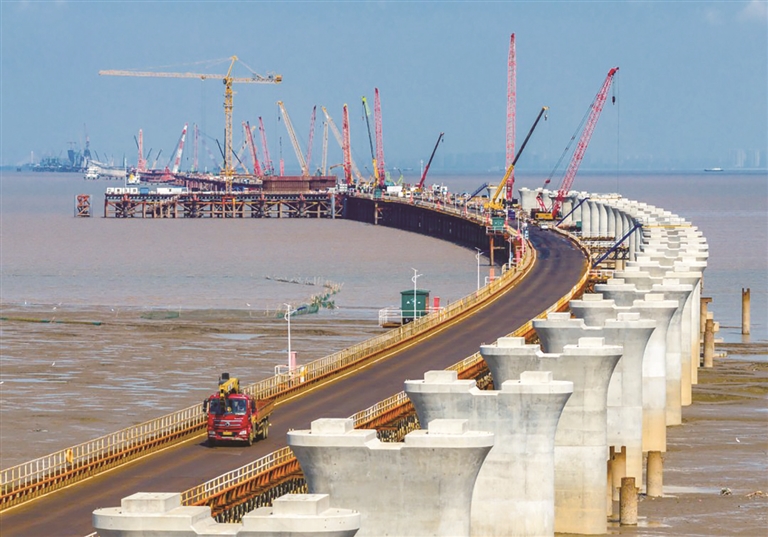 ④鞍钢集团为世界最长跨海高速铁路桥——杭州湾跨海铁路桥“南通至宁波高速铁路站”项目提供大约12万吨Q355C热轧产品。