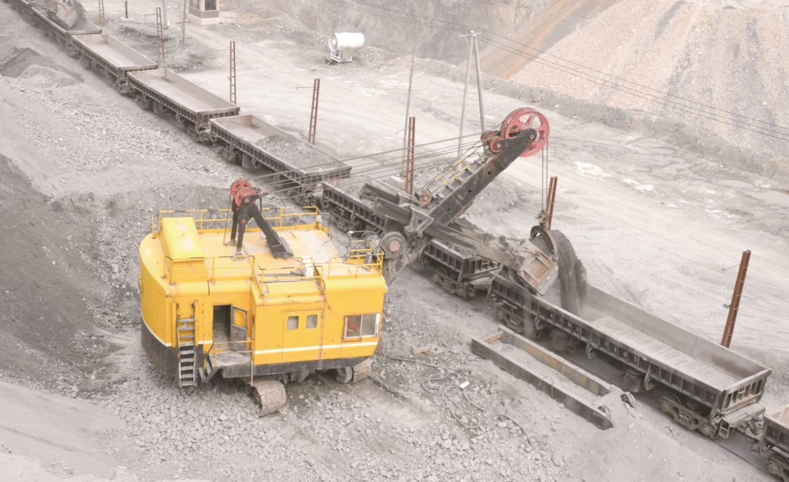 鞍钢矿业眼前山铁矿电铲正在进行倒装作业。该矿通过优化无底柱分段崩落法孔网参数、精准管控采场边界等举措