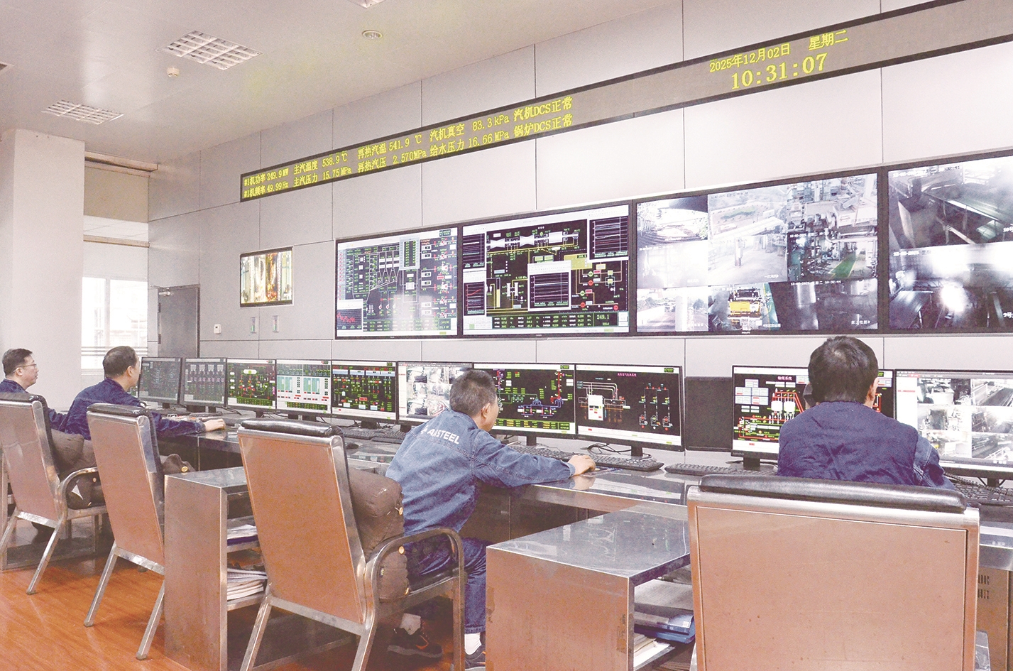 攀钢发电厂300兆瓦机组集控室内,职工通过监控画面实时观察关键生产数据。