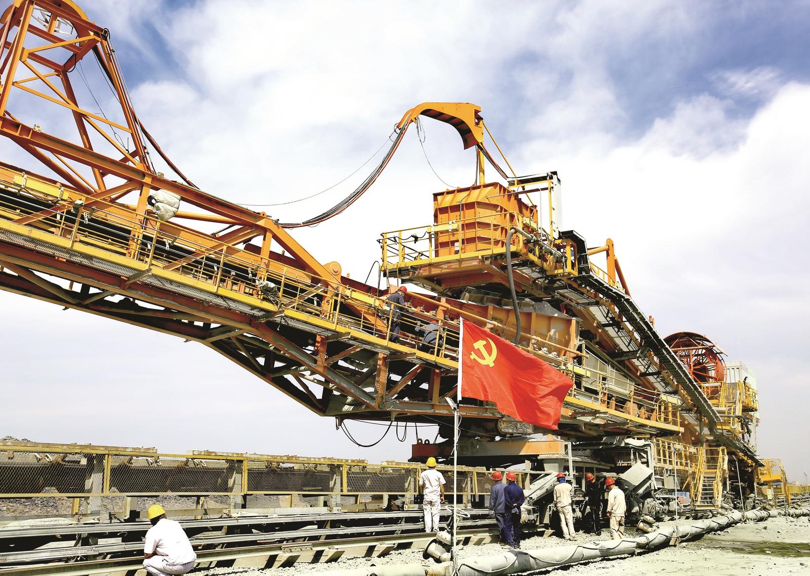 ⑤鞍钢集团各基层党支部充分发挥战斗堡垒作用,引领广大党员发挥先锋模范作用,在急难险重任务和义务奉献中冲锋在前。图为鞍钢矿业鞍千公司党员在排岩机旁进行义务奉献。