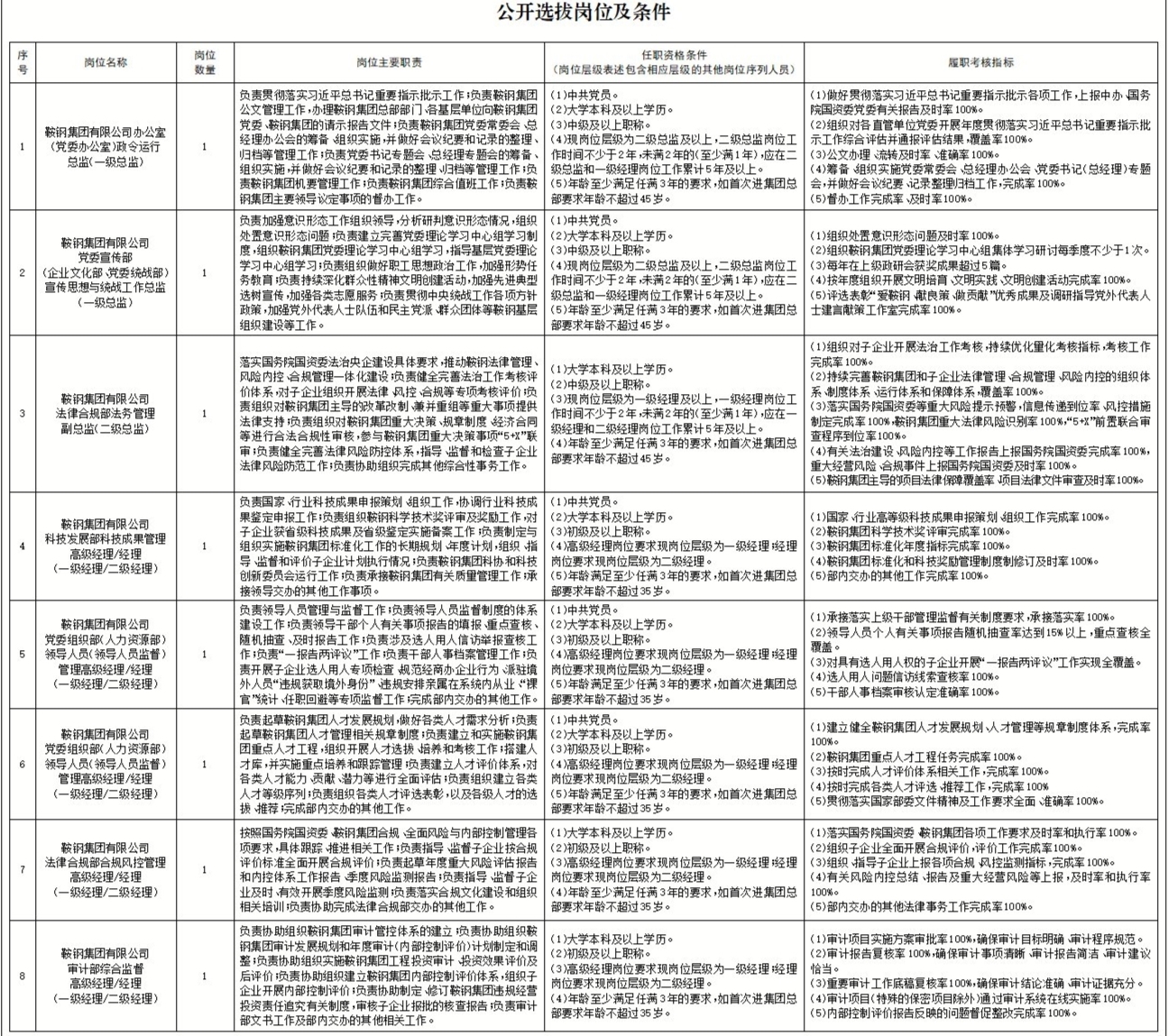 按照鞍钢集团三项制度改革相关要求,为进一步扩大选人用人视野,鞍钢集团党委组织部决定在全集团范围内公开选拔8名集团总部专业职能岗位人员,欢迎符合条件的人员和广大职工积极参与和监督。具体要求如下: