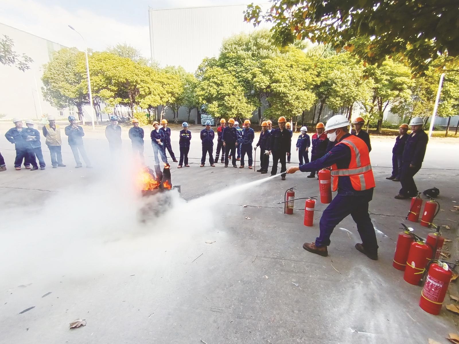 西昌钢钒板材厂职工正在进行消防应急演练。该厂认真落实安全管控措施,努力构建“培训+演练+督查”三位一