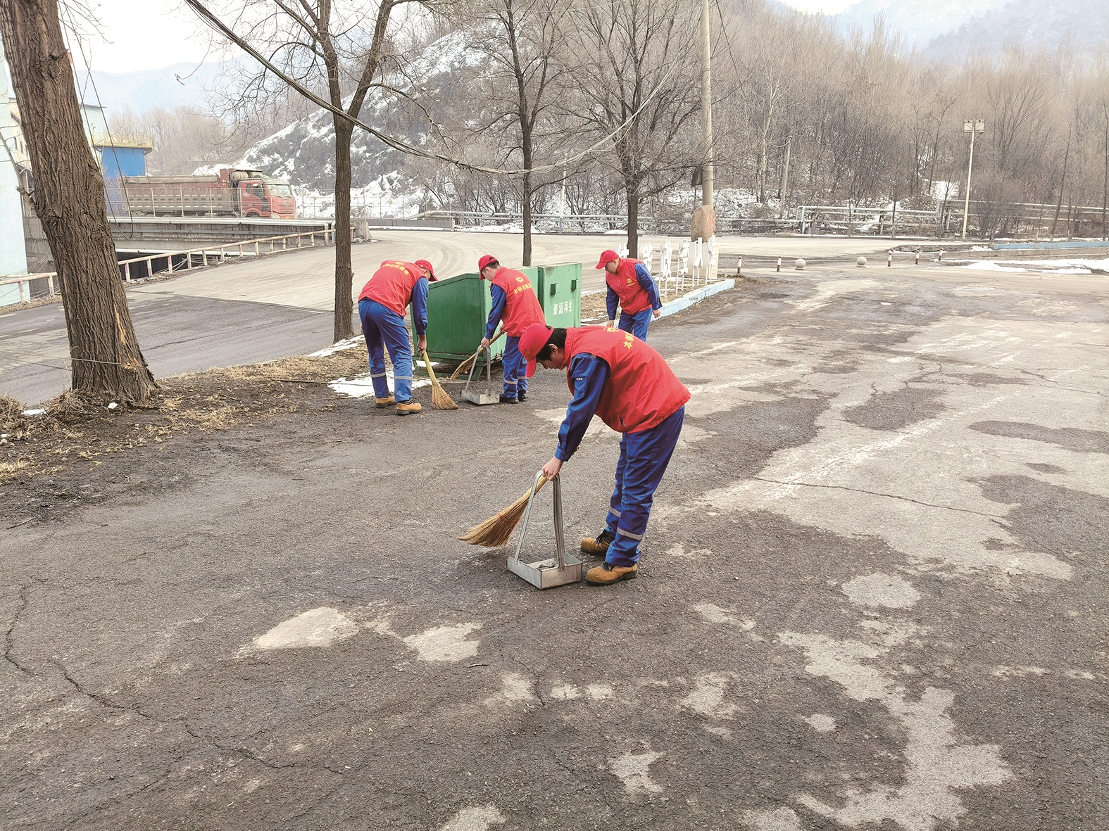 ⑤本钢北营资源再生公司志愿者利用工余时间清扫工区办公楼周边卫生,营造干净整洁文明的工作环境。通讯员 高丹 摄