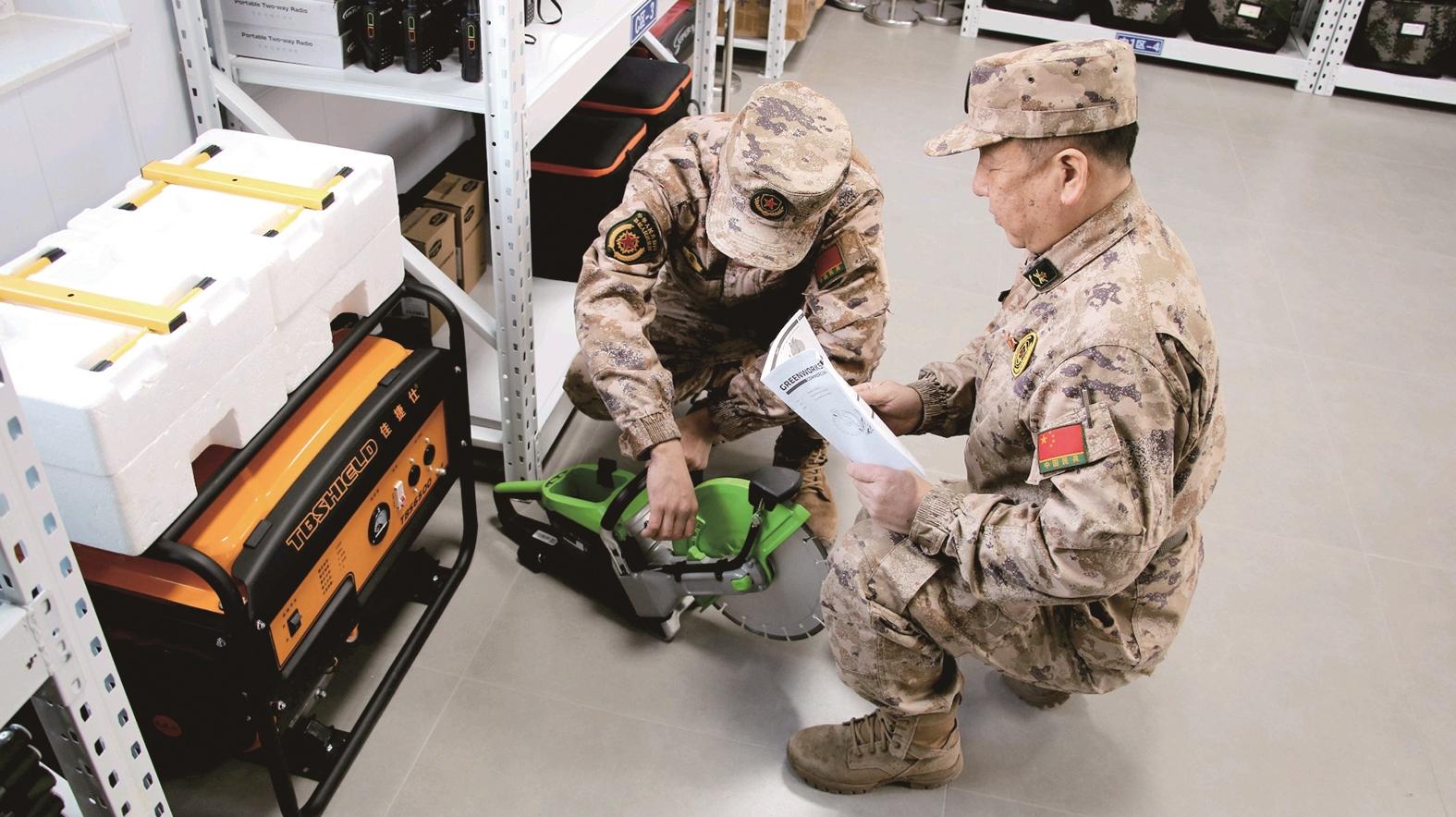 鞍钢资源武装保卫部人民武装科人员正在维护保养电动无齿切割机。该部立足企业需求,进一步充实完善应急物资储备,定期组织维护保养救援设备,确保关键时刻调得出、用得上。