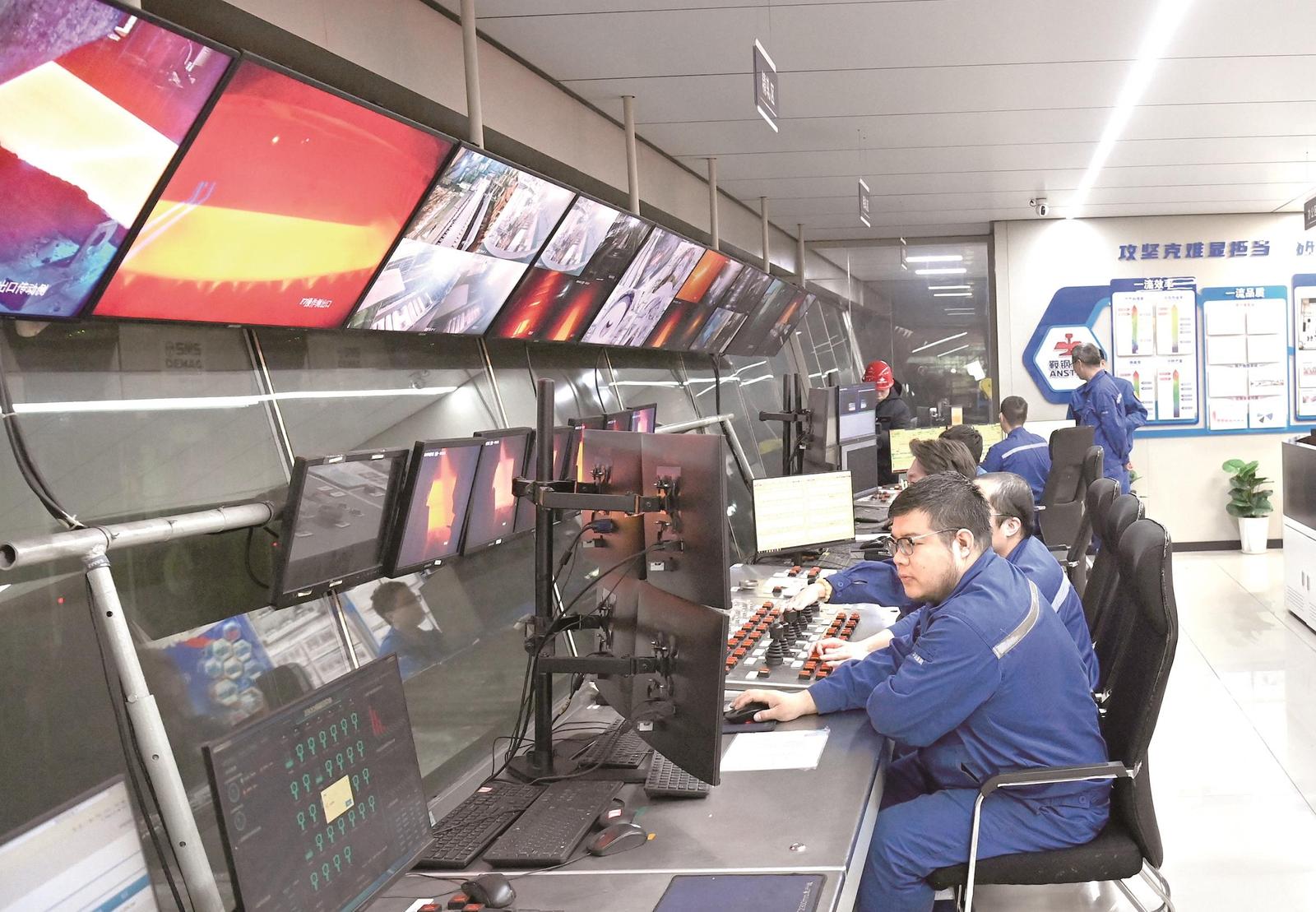 本钢板材热连轧厂职工在主控室内精心操作。