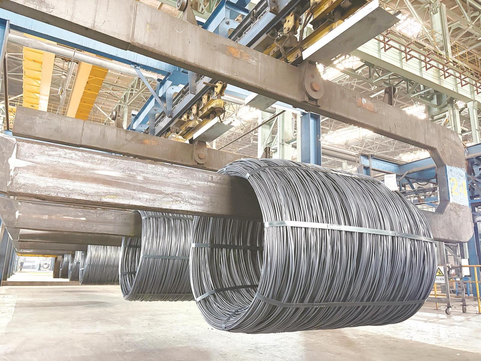 鞍钢股份生产的ENi3特种焊丝用盘条下线。 通讯员 英渤岩 摄