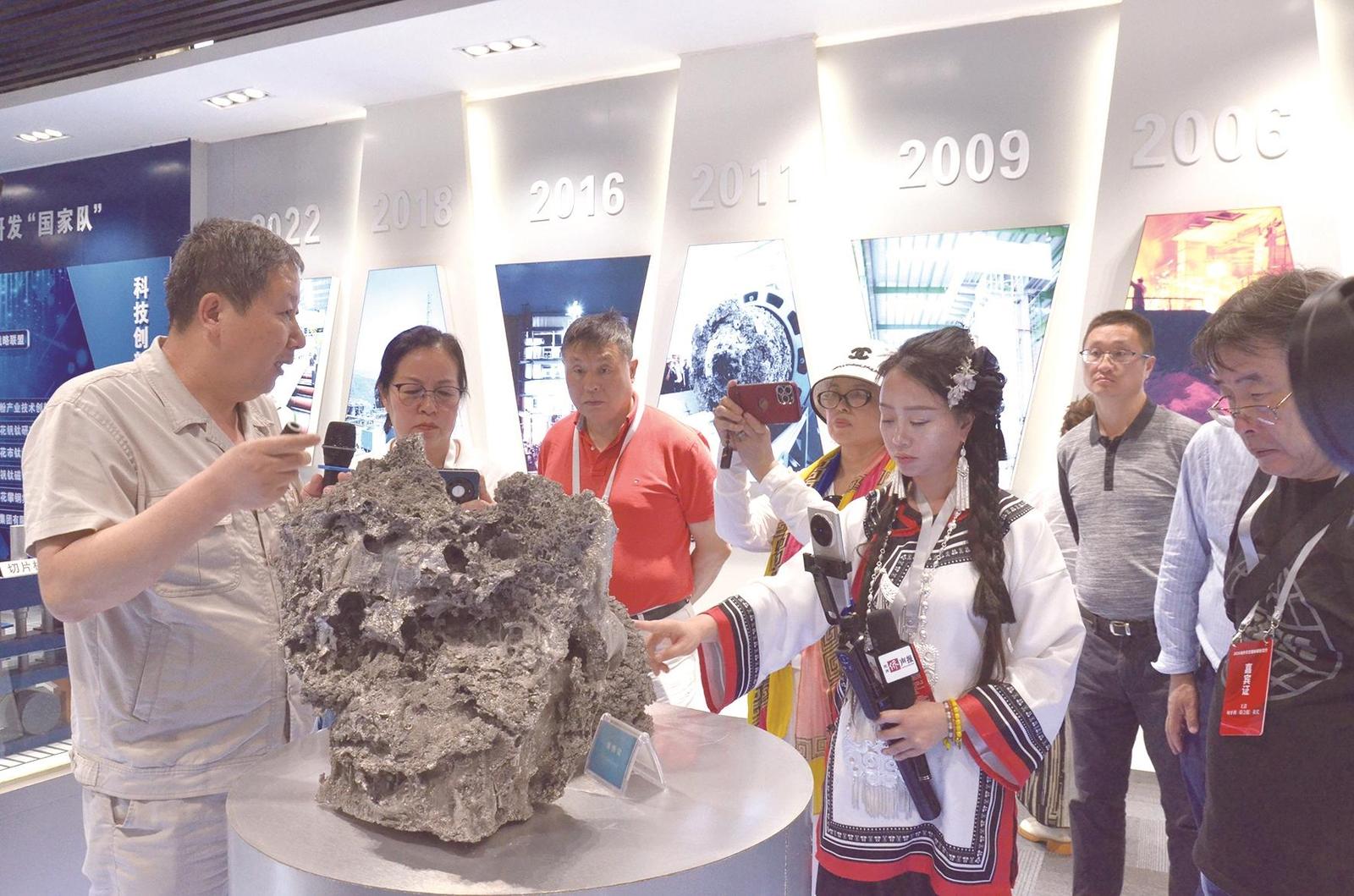 海外华文媒体记者在钛产业展厅参观采访。攀钢记者站 徐文丽 摄