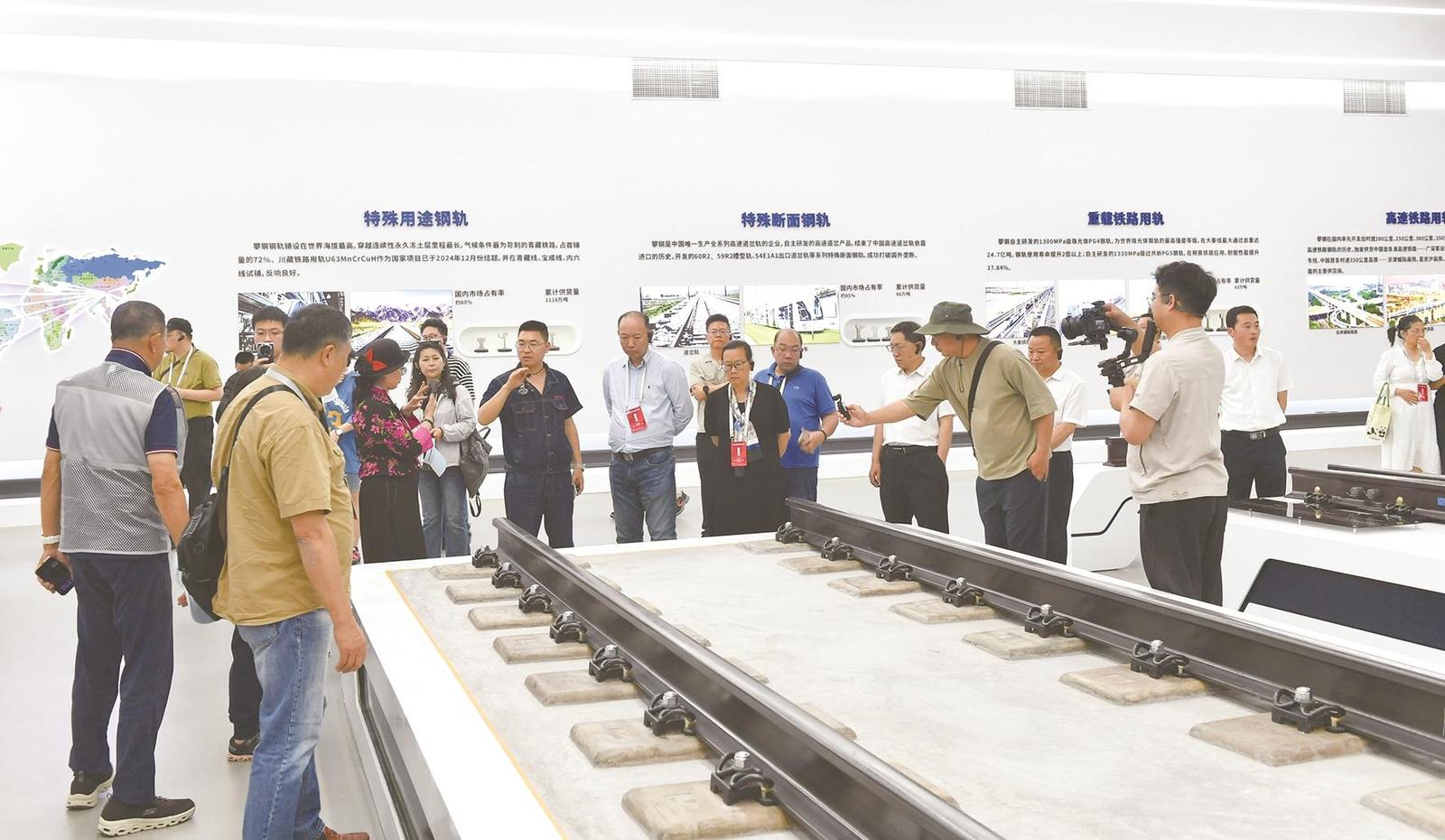 海外华文媒体记者在钢轨展厅参观采访。攀钢记者站 赵华敏 摄