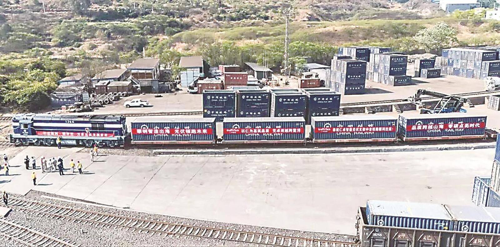满载着光伏支架的中老铁路国际货运专列整装待发。图片来源网络
