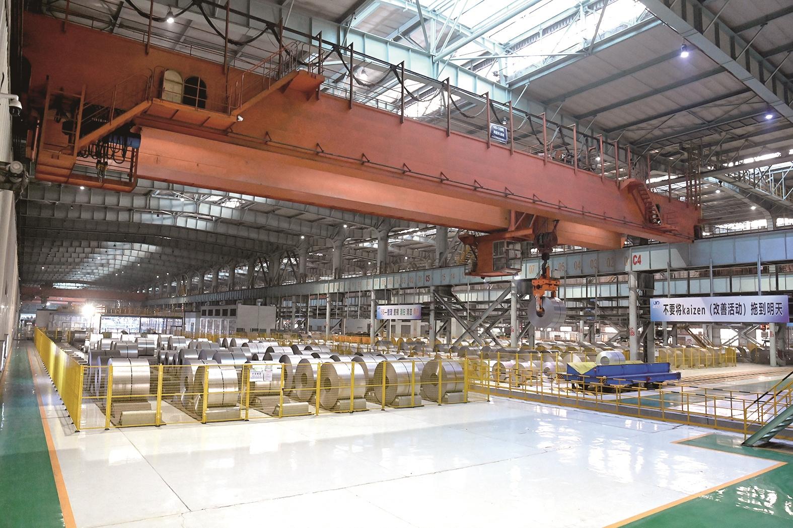 本钢浦项成品库吊装现场井然有序。