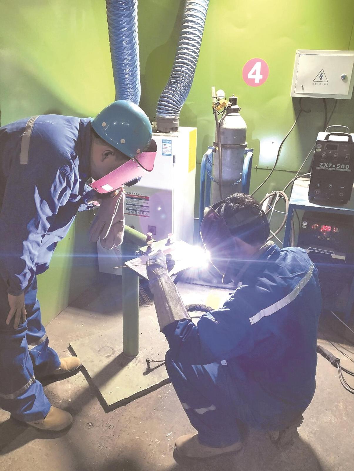 图为该分公司职工通过焊接练习,了解氩弧焊焊接特点。